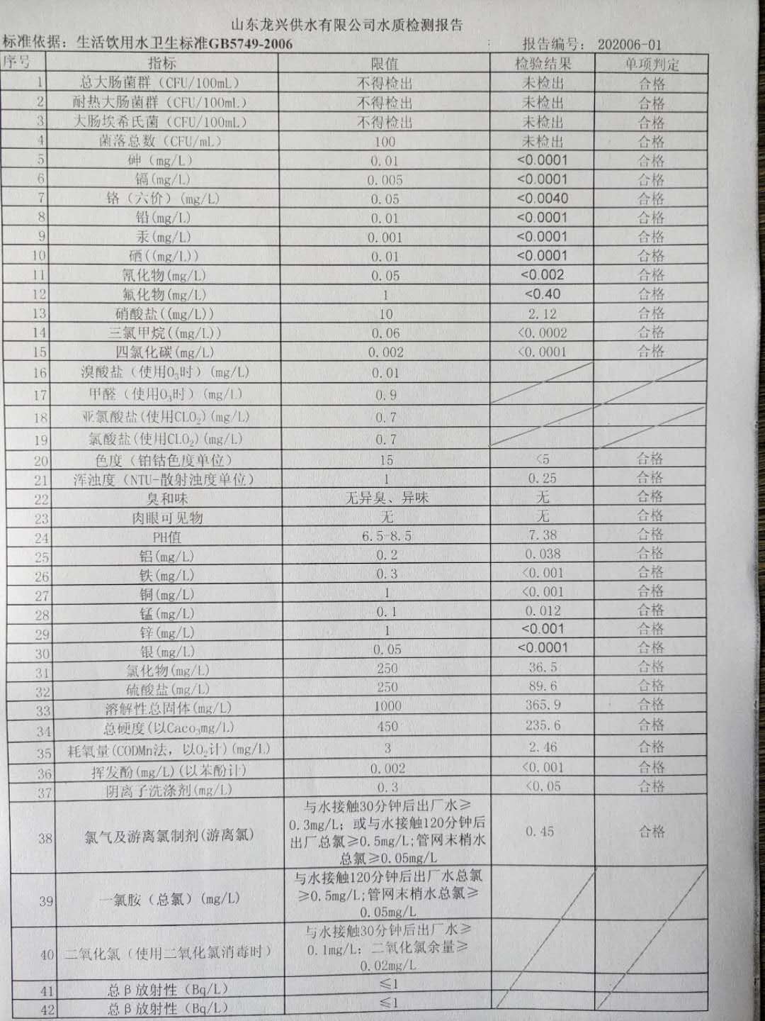 6月出廠水月檢報告