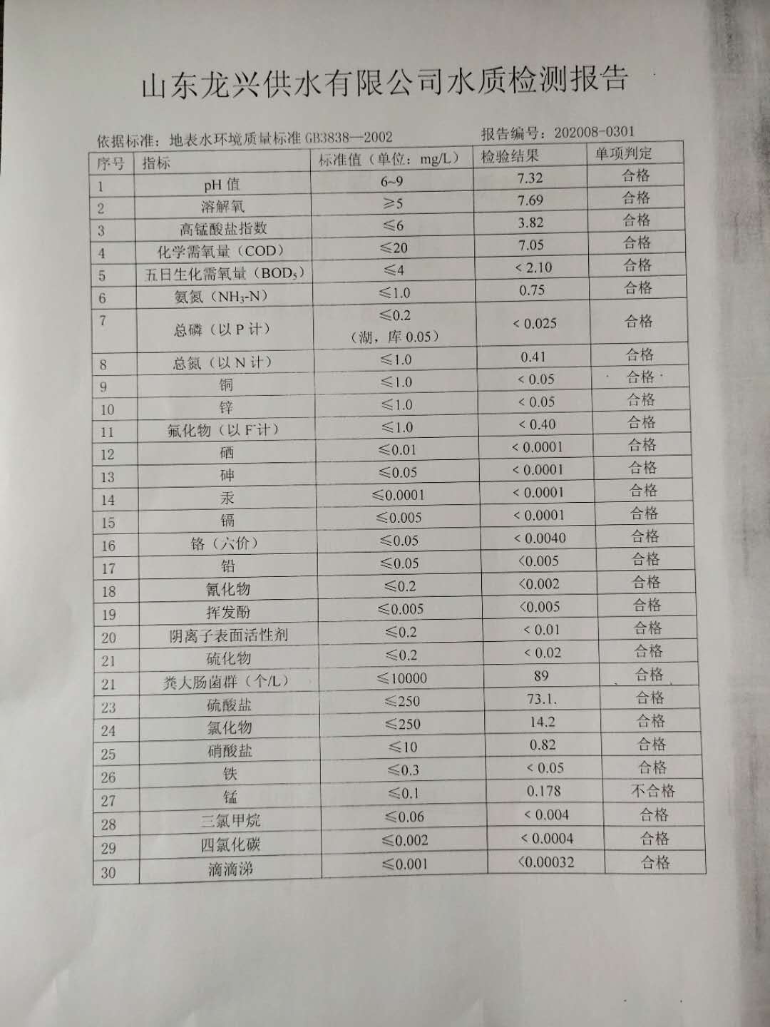上一篇: 2020-8-30出廠水水質(zhì)日檢報告
