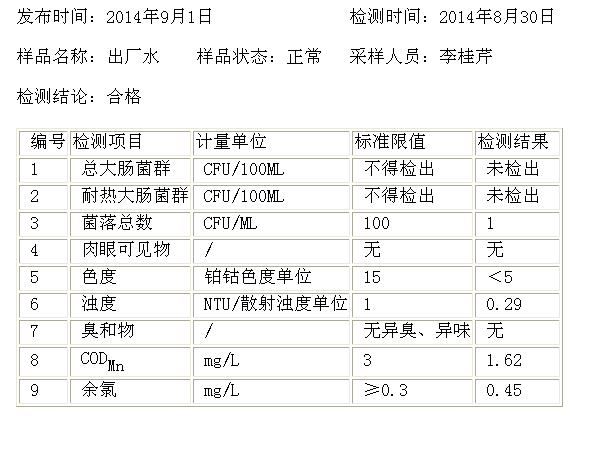 上一篇: 2014-8-25出廠水水質(zhì)日檢報告