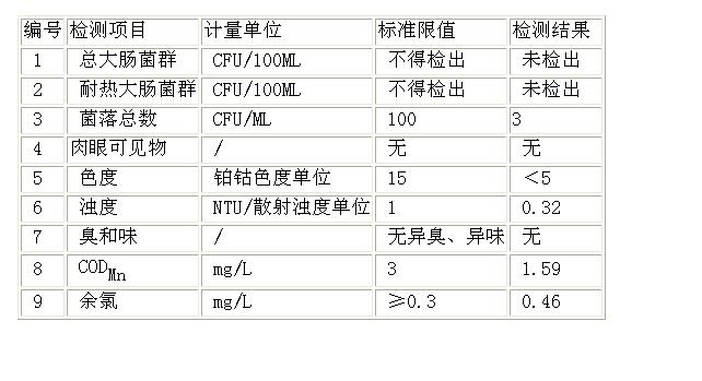 樣品名稱:出廠水 樣品狀態(tài):正常 采樣人員:李桂芹 檢測(cè)結(jié)論:合格